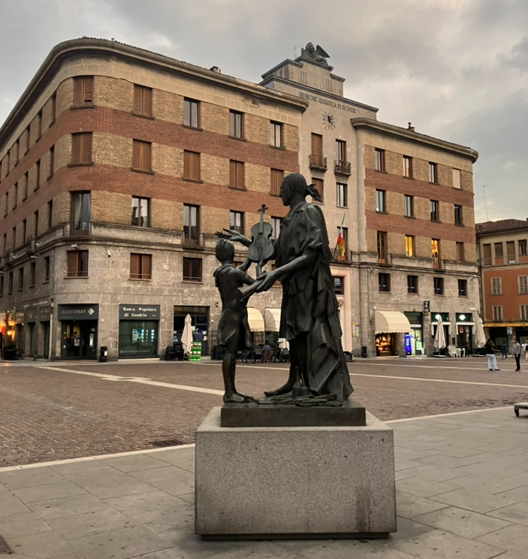 I arrived at the airport in Milan after nine long hours. My host family welcomed me with a big sign and a warm smile. We got home, and then my host mom took me for a walk around Cremona. I live in the center of the city, so everything is nearby. The streets are often filled with pedestrians and cyclists. I was surprised to see that even elderly people get around town by bike. After one day, I had already fallen in love with the city’s architecture. The buildings are so compact and colorful, each one with its own unique character. In the center there’s the Duomo, the main cathedral of the city. It’s gorgeous. Right next to it stands the Torrazzo, a tall bell tower you can climb on to get a view of the whole city.