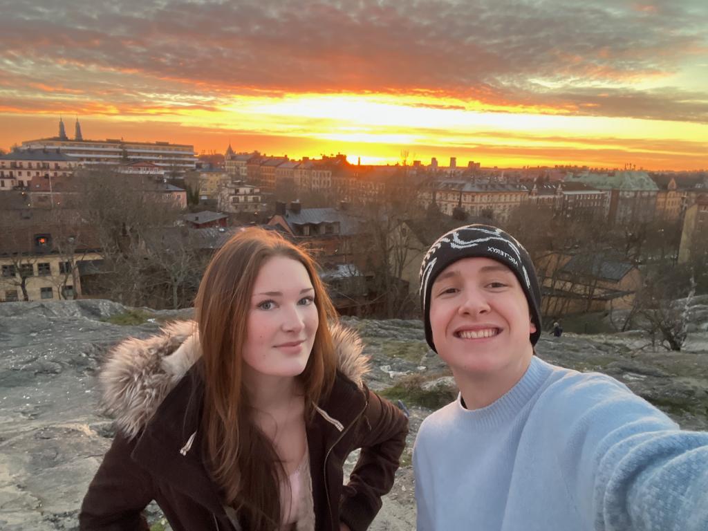 I've also been able to go to Stockholm a few times! We had the last Swedish lesson in Stockholm so it was great to see a big group of the Stockholm people at the same time. Afterwards we went out in the city and saw some of the light shows that were around the city including the one on city hall. Before Christmas I went back to Stockholm with a school friend to buy some Christmas gifts. We ended up going up to see the sunset over the city and it was very beautiful. Since it's the middle of winter the sun ended up setting around 3:15. Speaking of the sun, during the entire month of December Stockholm ended up getting around 30 minutes of direct sunlight.