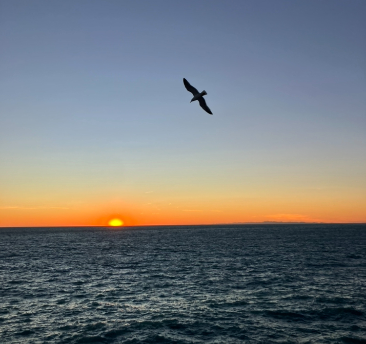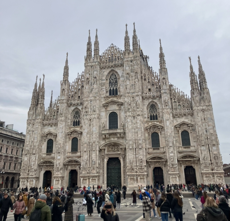 I’m also really glad I’ve explored some other zones in Italy that were on my bucket list. One of them was Milan, which I went to with the other exchange students in my town. We visited a museum, explored the center, and walked around a little. Of course, we got to see the Duomo, which is the most beautiful I’ve seen so far. It’s the perfect example of Italian Gothic architecture: enormous structures with great attention to detail. I didn’t get to go inside, because with so many tourists, it’s necessary to buy a ticket. Especially with the Winter Olympics happening, I saw lots of people coming from other parts of the world, like the U.S. and Canada. It felt weird because they seemed like foreigners to me even though I was also a tourist myself. During the long weekend, I also went to a beautiful spot in Liguria with my host family. We stopped by the beach and had a gelato at sunset. It was my highlight of the month.
